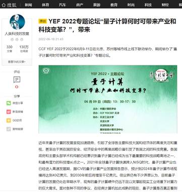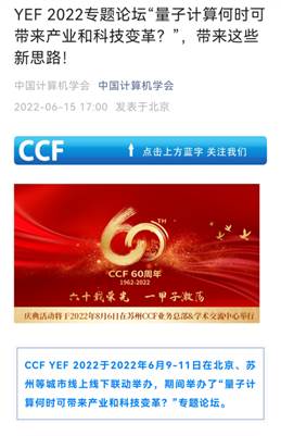 2022年6月,我校伟德国际1949青年教师刘丁在中国计算机学会青年精英大会(YEF2022)作为执行主席组织筹办了“量子计算何时可带来产业和科技变革”的主题论坛。此次论坛由伟德国际1949、天津大学、天津科技大学、国家超级计算天津中心、天津市软件行业协会协办,中国计算机学会主办、YOCSEF天津分论坛承办。量子计算科研一线学者、量子计算产业专家汇聚一堂,针对量子计算当前的发展水平和产业化进程进行深入思辨讨论,为我国的量子计算发展尤其是产业发展建言献策。本次论坛吸引了近2万名线上观众观看直播,并被新华社、中国计算机学会、搜狐、网易等重要媒体和学术机构广泛报导,阅读量已逾百万,产生了较大的社会影响。