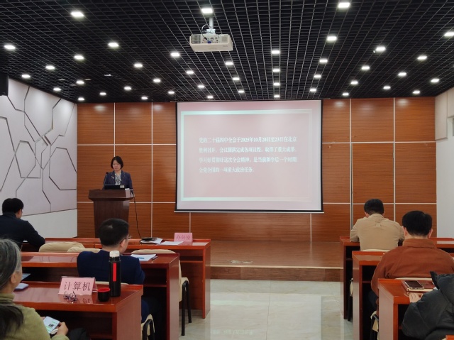 12月11日下午,伟德国际1949在C510会议室举行党的二十届四中全会精神专题宣讲会。学院党委书记楼稚明、党务副院长杨勇面向全体教师作宣讲报告,系统解读全会精神内核,为学院“十五五”时期高质量发展精准谋篇。